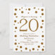 Points Parties scintillant Blanc & Or 20e 20 Anniversaire Invitations.
