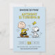 Célébrez les deux ans de votre petit bout avec cette invitation d'anniversaire absolument charmante de Peanuts ! Le design présente une illustration iconique de Charlie Brown et Snoopy dansant joyeusement, avec Woodstock flottant au-dessus, sur un fond bleu clair joyeux. Le titre "BON SANG, FÊTONS ÇA !!" donne un ton amusant, classique et mémorable. Cette carte est entièrement personnalisable pour inclure le nom de votre enfant, les détails de la fête et les informations de RSVP pour un deuxième anniversaire inoubliable !