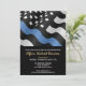 Honor the dedication and hard work of a new law enforcement officer with this customizable police graduation invitation. Featuring a police badge and the police force flag with bold black and white stripes and a proud thin blue line, this design symbolizes strength, service, and sacrifice. The invitation is personalized with the graduate’s name and party details, making it a memorable keepsake for friends, family, and fellow officers. Perfect for celebrating a police academy graduation, promotion, or milestone in a future officer’s career. Invite your guests in style and show support for the newest member of the thin blue line community.