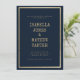Une machine à écrire à thème bleu marine et or vintage avec typographie de police or invitation de mariage de style rustique.Est parfait pour toute fille raffinée et sophistiquée ou n'importe qui. Ce design est idéal pour un événement de fête branché et élégant. Customisez ce design avec votre propre message et des informations personnalisées. Tous les dessins sont imprimés.