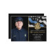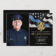 Cette conception comprend un drapeau de la police avec des rayures noires et blanches, ainsi qu'une mince bande bleue. L'insigne de police et le texte en or sont au-dessus de tous les détails du parti pour l'officier, le shérif, le capitaine ou le chef de la police qui prend sa retraite. Customisez plus loin avec une photo du nouveau retraité.