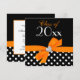 Une invitation à la fête de faire-part de graduation avec une illustration en coeur de losange et en arc de ruban orange, accédant à un motif de pois noir et blanc. Idéal pour une invitation à obtenir un diplôme d'études secondaires, une invitation à obtenir un diplôme d'études supérieures, une invitation à une fête de remise de diplômes et plus encore. Fille et mignon. customisez facilement avec vos détails de fête ! Les dessins sont des illustrations/graphiques imprimés - PAS DES EMBELLISSEMENTS RÉELS.