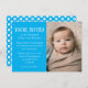 Invitation Polka-point bleu et blanc Photo Bébé Bénédiction