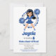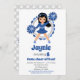 Un mignon pom-pom girl noir en bleu pour cette mignonne invitation d'anniversaire.