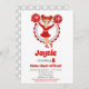 Un mignon pom-pom girl rousse en rouge pour cette mignonne invitation d'anniversaire.