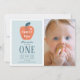 Cette mignonne carte d'invitation photo "la pomme de l'oeil" pour le 1er anniversaire du garçon comporte une pomme rouge avec feuille bleu marine sur un arrière - plan bleu clair encadré par une bordure blanche. Au verso, on retrouve un arrière - plan bleu ciel aux motifs de pomme fleuris. Personnalisez-le selon vos besoins. Vous pouvez trouver des produits correspondants dans mon magasin.