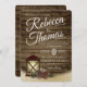 Cones rustiques de lanterne et de pin et de grange invitation de mariage rustique d'hiver.