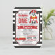 Invitation de fête d'anniversaire de pompier sur motif à rayures noir et blanc. En vedette pompier dalmate chef pompier et moteur incendie camion feu rouge, camion de pompier. Un et un 1er anniversaire peuvent être personnalisés pour l'anniversaire de votre enfant, de votre enfant, de votre enfant, de votre enfant, de votre bébé ou de votre bébé. Invitation neutre pour garçon ou fille.
