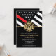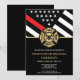 Célébrez avec style l’exploit durement mérité de votre pompier grâce à cette invitation personnalisée à la fête de remise des diplômes des pompiers. Doté d'un drapeau de pompier audacieux à rayures noires et blanches, d'une ligne rouge mince symbolique et d'un insigne de service d'incendie en or classique, cette invitation rend hommage au courage et au dévouement de votre diplômé. Parfait pour les fêtes de fin d'études de pompiers, les célébrations de l'école de pompiers ou l'honneur d'une nouvelle carrière dans la lutte contre les incendies, cette invitation met en évidence leur service et leur héroïsme. Personnalisez avec le nom de votre pompier, la date d’obtention du diplôme, l’heure et les détails de la fête. Idéal pour les fêtes sur le thème des pompiers, les célébrations familiales des pompiers et les diplômes des pompiers.