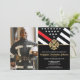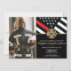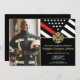 Cette conception comprend un drapeau de pompier avec des rayures noires et blanches, ainsi qu'une fine bande rouge. L'insigne d'un pompier est au-dessus de tous les détails du parti pour le pompier diplômé, qui est à côté d'une photo du nouveau diplômé de l'académie des incendies. Cette conception convient aussi bien à un pompier, à un lieutenant ou à une fête de retraite du chef qui prend sa retraite.