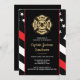 Cette conception comprend un drapeau de pompier avec des rayures noires et blanches, ainsi qu'une fine bande rouge. L'insigne d'un pompier est au-dessus de tous les détails du parti pour le pompier, le lieutenant ou le parti de retraite du chef qui prend sa retraite.