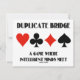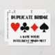 Si vous accueillez une partie de pont, vous aurez plaisir à employer ces invitations personnalisables comportant les quatre costumes de carte avec l'énonciation "pont en double un jeu où les esprits intelligents se réunissent".