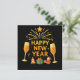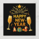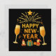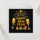 Celebrate the New Year with this warm golden festive illustration featuring Santa figures, gifts, shining stars, and elegant party elements. A bright and joyful design that adds a magical touch to every New Year celebration