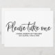 Un panneau de faveurs de mariage "Please take one" avec lettrage élégant