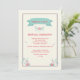 Des grappes délicates de fleurs roses et sarcelles et du feuillage créent cette tendre invitation. Elle est encadrée dans les deux couleurs et comporte une bannière sarcelle sur fond crème. Parfait pour les fêtes de bébé ou les célébrations d'anniversaire de petite fille.
