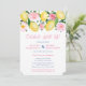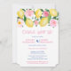 Invitation de réception (mariage) seulement avec des citrons aquarelle et des fleurs roses, complétées par des carreaux bleus cobalt et blancs au verso. Ceci a été conçu pour inviter les invités à une grande célébration de mariage, n'ayant eu qu'une très petite cérémonie de mariage avec peu de personnes présentes.