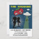 Pour les fans de Sci Fi et les amateurs vintages de flics d'horreur! Avoir un mariage unique avec un thème de science-fiction. Les invitations comprennent des soucoupes volantes, des enlèvements de vaches, des monstres maléfiques de tomates et un couple (2 femmes) courant.