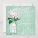 Invitations vertes et blanches en bon état élégantes de fête d'anniversaire de Quinceanera 15èmes pour des adolescentes avec un pot de maçon blanc et vert mignon de boule en verre et une illustration vintage de fleur d'hortensia assez blanc sur un collage vert en bon état chic minable antique élégant avec de belles décorations fleuries blanches, une libellule, et l'inscription fanée sur un motif élégant de harlequin. Sur l'inverse des invitations est les perles et le tapis blancs imprimés fascinants de dentelle avec le texte pour que vous personnalisiez avec vos détails de partie. Invitations chics, girly, à la mode, à la mode, modernes parfaits pour le ressort, été, chute/automne et événements d'hiver. Tout les texte peut être facilement customisé pour répondre à vos besoins et vous pouvez changer le style de police, la couleur et la taille de la police si vous désirez. Si vous avez besoin de n'importe quelle aide customisant votre produit svp me contactez par mon magasin et je serai heureux d'aider. Tapis de perle par le ©Hazel Kinvig-Paul www.design-a-dream.co.