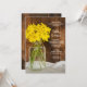 Poursuivez la célébration le lendemain de leur cérémonie de mariage avec la charmante invitation au brunch de mariage champêtre Mason Jar et Yellow Daisies Country. Cette invitation personnalisée, élégante et décontractée, pour le petit-déjeuner ou le déjeuner après le mariage, présente une photographie fleurie charmante d'un pot de conserve en verre rempli de fleurs de marguerite jaune et un fond en bois de grange brun patiné. Idéal pour une célébration de fête champêtre ou de fête dans une grange de style ranch. Disponible sous forme d'invitation imprimée pour envoi postal ou en téléchargement numérique pour un partage facile en ligne.