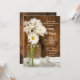 Invitez vos invités à poursuivre la célébration le matin après la cérémonie de mariage avec l'invitation informelle mais élégante pour le brunch d'après-mariage à thème rustique chic Mason Jar et White Daisies Country. Cette charmante invitation pour le petit-déjeuner ou le déjeuner d'après-mariage à thème ranch chic rustique personnalisable présente une photographie florale numérique pittoresque d'un pot en verre rempli de fleurs de marguerite blanche et un fond en bois de grange brun patiné. Parfaite source d'inspiration pour votre célébration de style fermier décontracté ou votre fête dans une grange.
