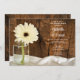 Invitez vos invités à célébrer les jeunes mariés le matin après leur cérémonie de mariage avec la charmante invitation pour le brunch de mariage Mason Jar et White Daisy Barn. Cette invitation personnalisée pour un déjeuner ou un petit-déjeuner après le mariage, rustique et élégante, présente une photographie florale numérique charmante d'un pot de conserve en verre rempli d'une seule fleur blanche de gerbera et un fond en bois de grange brun patiné. Une parfaite source d'inspiration pour votre célébration décontractée de mariage à la grange.