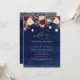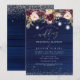 Fleurs aquarelles boho roses et pivoines bourguignonnes et blush avec bois rustique en bleu marine et pots mason. Accentué d'un script manuscrit faux or élégant et moderne Invitation de mariage. Couleur de fond DIY.