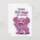 Joli design avec un axolotl portant un sac à dos et tenant un grand stylo avec la citation "Joyeux 100 jours d'école". Joyeux 100ème jour d'école ou de maternelle.