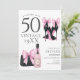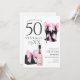 Célébrez le passage à 50 ans avec cette invitation tendance mettant en vedette des escarpins noirs chic de designer avec des nœuds roses coquettes et du champagne rose élégant et sac. Parfait pour une fête d'anniversaire de 50 ans glamour et inoubliable.