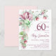 Un élégant modèle d'invitation pour une fête de 60e anniversaire avec un cadre doré et deux arrangements de roses roses blush. Tout le texte est modifiable.