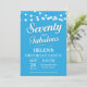Invitation pour 70e anniversaire avec guirlande lumineuse fond bleu. Fête d'anniversaire femme. Soixante-dix ans et fabuleuse. Tout âge. Pour une personnalisation plus poussée, veuillez cliquer sur le bouton "Personnaliser" et utiliser notre outil de conception pour modifier ce modèle.