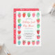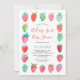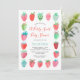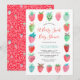 Une invitation tendance avec des fraises peintes à la main en rouge et rose avec des accents de bleu et de vert.