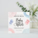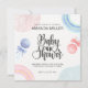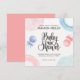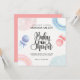 Jouets pour bébé rose et bleu mignons, illustration aquarelle, invitation à une baby shower. Typographie gris foncé personnalisable sur fond blanc.
