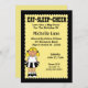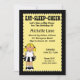 Belle invitation d'anniversaire Pom-pom girl. L'Invitation a une jolie pom-pom girl blonde avec une jupe noire et blanche. Customisez avec les détails de votre fête.