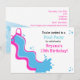 Invitation pour filles à une fête de piscine avec toboggan aquatique rose. Personnalisez pour n'importe quel événement.