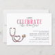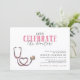 Célébrez une réalisation remarquable avec cette élégante carte de fin d'études, parfaite pour honorer un nouveau docteur. Le design présente un stéthoscope rose délicat entrelacé avec un cœur, accentué d'une touche de paillettes, symbolisant le soin et le dévouement. La phrase « Célébrons le Docteur ! » est magnifiquement rendue dans une écriture moderne. Cette carte est idéale pour annoncer la fin des études de médecine, inviter des invités à une fête de célébration ou envoyer des félicitations à un diplômé fier. Rendez leur journée spéciale encore plus mémorable avec cette carte unique et élégante.