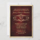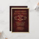 Cette invitation de célébration d'anniversaire de mariage formelle présente un chiffre 50 doré encadré dans une image de cœur à l'intérieur d'un cadre à enroulement doré sur un fond rouge burgundy élégant et bruni. Le texte personnalisable est également en or, avec l'image et le texte entièrement encadrés par une bordure dorée assortie. Le dos de l'invitation est rouge burgundy bleu. **Veuillez noter que l'image est imprimée sur la carte, qui ne contient pas de substance métallique.**