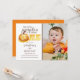 Douce cette petite citrouille a un an, invitation pour la fête d'anniversaire. Caractérisé par une citrouille orange à l'aquarelle et votre photo préférée. L'invitation dispose également d'un modèle d'invitation pour fête d'anniversaire moderne et facile à personnaliser, les styles, tailles et couleurs de police peuvent être modifiés en cliquant sur le lien de personnalisation supplémentaire après la personnalisation.
