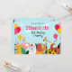 Invitation de fête du 5e anniversaire de l'enfant conçue avec des personnages animaliers et des ballons colorés. Pour personnaliser, il suffit d'insérer le nom de l'enfant dans notre modèle facile, en remplaçant l'exemple de texte. Vous pouvez également remplacer le numéro 5 par n'importe quel âge en utilisant notre modèle et en remplaçant le numéro d'échantillon.