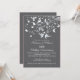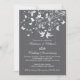 Invitation pour la fête d'anniversaire de mariage élégante et moderne représentant des oiseaux amoureux avec une branche d'arbre ornée de papillons et de cœurs sur un fond gris charbon foncé à rayures fines. Parfaite pour une célébration d'anniversaire de mariage de 25, 30, 40, 45, 50 ou 60 ans. Disponible dans notre boutique dans un large choix de couleurs modernes et chic.