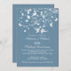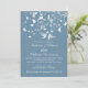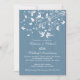 Invitation pour la fête d'anniversaire de mariage élégante et moderne de love birds avec un couple d'oiseaux amoureux sur une branche d'arbre ornée de papillons et de cœurs sur un fond rayé bleu. Parfaite pour une célébration d'anniversaire de mariage de 25, 30, 40, 45, 50 ou 60 ans. Disponible dans notre boutique dans un grand choix de couleurs modernes et chic.