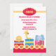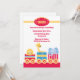Cette invitation de fête d'anniversaire 5x7 a un thème de cirque mignon. En bas, un train transporte un lion, une girafe et un éléphant. En haut, il y a un cercle avec, "Cirque" écrit dedans. Vous pouvez facilement customiser ceci avec vos informations de fête. Cocoa Studio