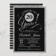 Invitation pour une fête d'anniversaire de mariage de 20 ans en faux strass argent et noir. Carte d'invitation imprimée avec une typographie élégante en police de caractères script et des rayures au dos. À la santé de 20 ans ! Peut être personnalisée pour n'importe quelle année d'anniversaire. Parfait pour une célébration élégante du 20e anniversaire.