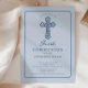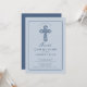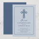 Invitez la famille et les amis à célébrer une étape sacrée avec cette élégante invitation de première communion à croix bleue. Avec une illustration raffinée de croix feuillue, des tons bleus doux et une typographie intemporelle, ce design offre un bel équilibre entre tradition et simplicité moderne.