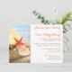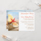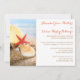 Cherchez-vous à organiser une réception de mariage abordable après la cérémonie pour célébrer votre union sur une plage tropicale ? Même si vous êtes partis en voyage de noces dans les tropiques sans vos proches, vous pouvez toujours donner à votre famille et à vos amis un aperçu de la joie que vous avez partagée ce jour-là avec cette invitation de réception seulement sur le thème de la plage de sable, des étoiles de mer et des coquillages. Le texte est en orange tropical et marron sable, mais il peut être modifié pour correspondre à vos couleurs préférées.