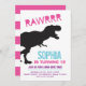 Préparez-vous à une fête d'anniversaire de dinosaure T Rex pleine de cris rauques et de plaisir ! Cette invitation remplie de dinosaures est stylisée en rose, bleu et violet - parfaite pour le jour spécial de n'importe quelle petite fille ! Ça va être dino-mite !