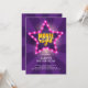 Nouvel anniversaire de fête d'anniversaire de la vedette de cinéma néon sur un arrière - plan radial violet avec un dos assorti.