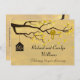 Célébrez un cinquantième anniversaire de mariage avec cette charmante invitation sur le thème des oiseaux de l'amour dorés. Ce design représente un arbre avec des feuilles dorées et des oiseaux de l'amour sur un fond d'une teinte dorée charmante. Le verso de l'invitation offre suffisamment d'espace pour les informations de célébration. Design vectoriel original par Night Owl's Menagerie, 2015.