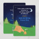 Invitation pour l'anniversaire d'un garçon avec nuitée de camping. Personnalisez l'avant et l'arrière. Certains graphiques présentés sont créés par Prettygrafikdesign