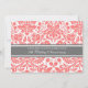 Carton d'invitation pour une fête d'anniversaire de 15 ans de mariage en orange pêche élégant, rose, gris et blanc, classique et chic à motif floral damassé vintage, délicat et contemporain. Personnalisable avec les détails de votre fête.