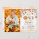 Invitation photo pour le premier 1er anniversaire citrouille pailletée feuilles tombantes rustiques
